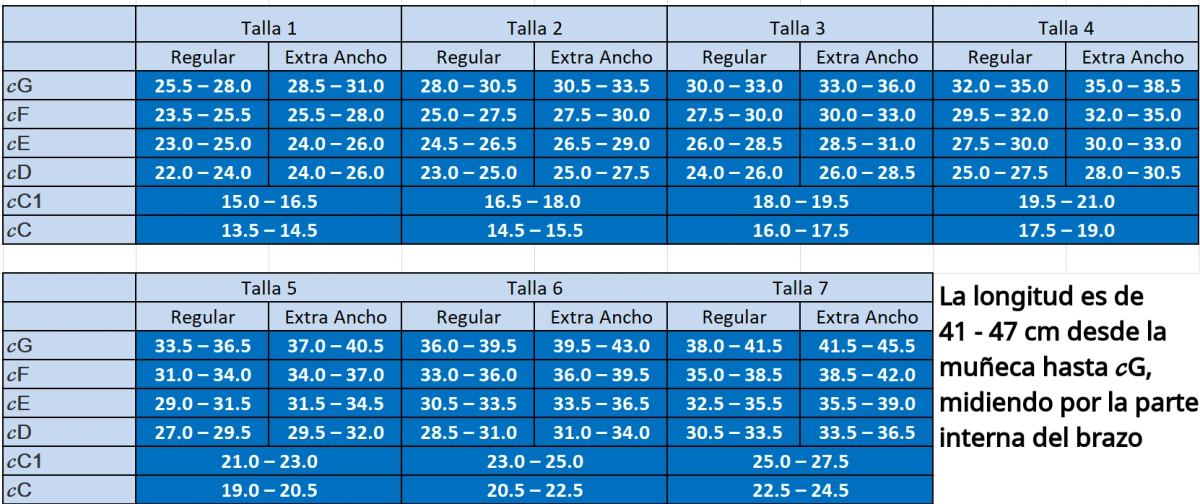 cC1: Perímetro del antebrazo (5cm por encima de la muñeca)