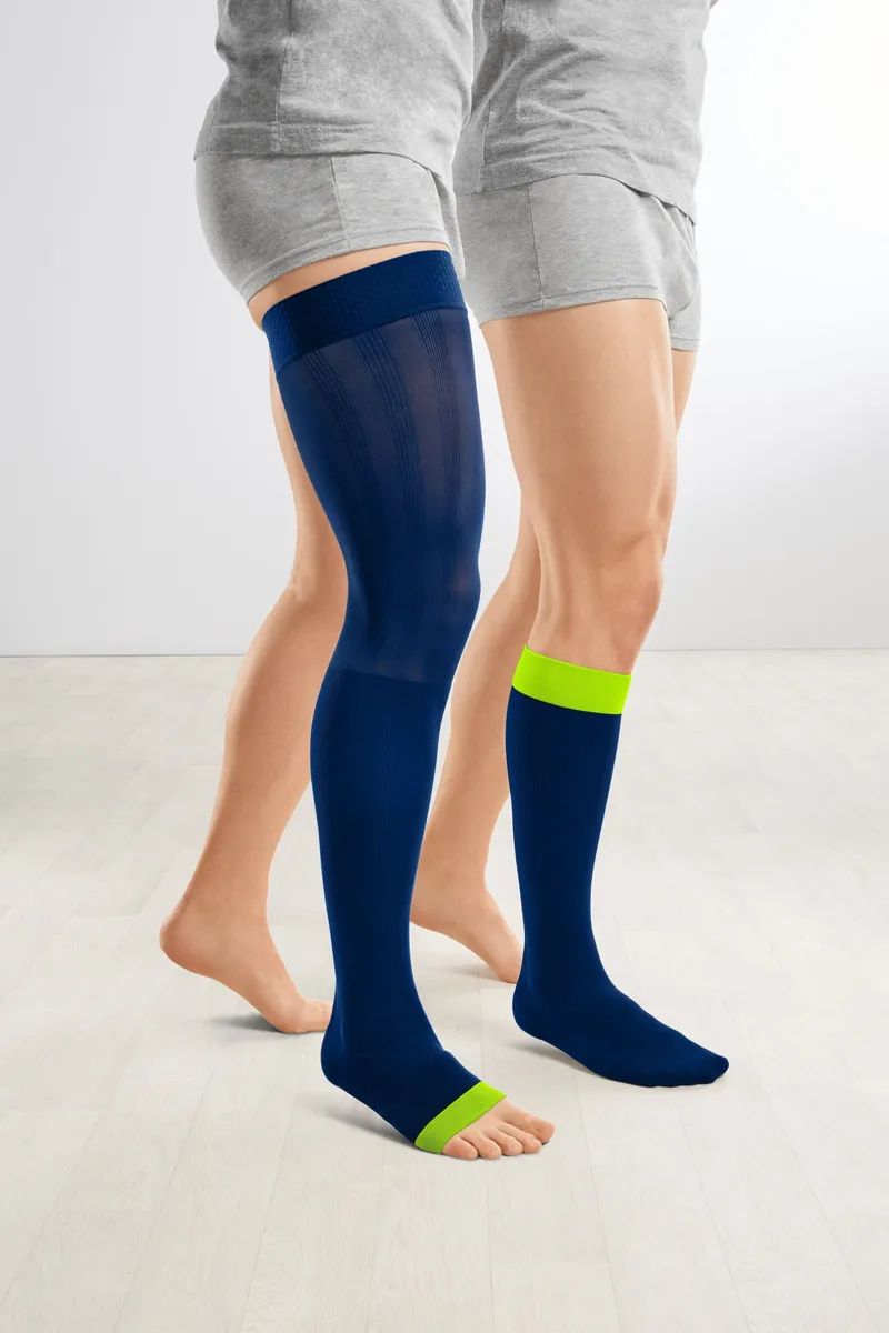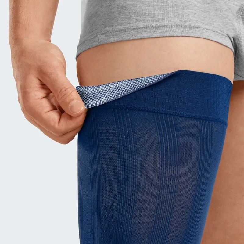 Las medias Rehan One se deslizan suavemente por la piel y se mantienen en su posición gracias a la banda elástica superior y a los puntos antideslizantes interiores.